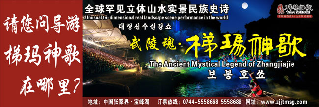 《武陵魂•梯瑪神歌》是一場記述土家族起源、演變、戰(zhàn)爭、生產(chǎn)生活等內(nèi)容的大型立體山水實景演出,揉合了音樂、舞蹈、文學等多種藝術(shù)形式,如幻如夢的舞美燈光,搖曳生姿的原生態(tài)歌舞……濃縮了土家族數(shù)千年的發(fā)展歷史,400多名演員以自然淳樸的表演充分的展示了土家的民族文化特征,給游客帶來了耳目一新的感受。一場視聽的饕餮盛宴,一曲驚天地、泣鬼神的曠世古歌,給人山水文化光影視聽的享受!境銎罚簭埣医缣莠斏窀栉幕瘋鞑ビ邢薰尽