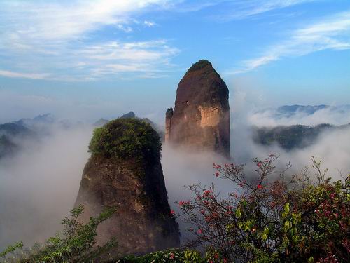 | 莨山,位于湖南省新寧縣境內(nèi)。南與桂林相連,北與張家界呼應(yīng),是國內(nèi)最為典型的丹霞地貌風(fēng)景區(qū),是國家重點(diǎn)風(fēng)景名勝區(qū),又是國家地質(zhì)公園,總面積108平方公里,轄紫霞峒、 扶夷江、駱駝峰、牛鼻寨、八角寨五大景區(qū),地質(zhì)結(jié)構(gòu)奇特,山、水、林、洞渾然一體。境內(nèi)有形神兼?zhèn)涞膶④娛、惟妙惟肖的駱駝峰、鬼斧神工?天下第一巷"、地造天設(shè)的鯨魚鬧海、氣勢磅礴堪稱亞洲第一的天生橋、高聳入云而又十分逼真的辣椒峰,這便是嘆為觀止的莨山六絕,這是大自然對莨山的恩賜,每一絕都舉世無雙。莨山還生長繁衍著銀杉、珙桐、華南虎、云豹、靈貓、大鯢等珍稀動植物,也為莨山的天然景色增添了無限靈動與生氣。這里出土有10萬年前的獼猴頭骨化石,有4500年前的新石器文化遺址,有清化農(nóng)民起義的寨堡,有晚清重臣劉坤一、劉長佑、江忠源的宗祠、墓葬,有異彩紛呈的民族風(fēng)情,有膾炙人口的華采詩賦,明代縣人陳永猷留下了"夫夷(新寧古稱)勝景天成就,攝杖歸來入夢頻"的美譽(yù),著名詩人艾青留下了"桂林山水甲天下,莨山山水賽桂林"的喟嘆。