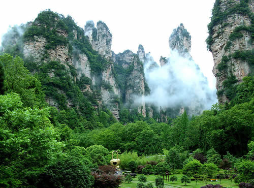 上 午:游覽“擴(kuò)大的盆景,縮小的仙境”有峰林之王稱(chēng)號(hào)的---天子山景區(qū)(仙女散花、御筆峰、天子閣、云巖等景點(diǎn)),賀龍公園,十大元帥之一的——賀龍銅像,后前往山下的景區(qū)游覽。(下山有兩種方式:其一:可徒步經(jīng)臥龍嶺下行至山下的十里畫(huà)廊景區(qū)。其二:也可在天子山索道上站乘坐索道下山,然后再乘坐景區(qū)環(huán)保車(chē)至十里畫(huà)廊景區(qū)),下山后游覽十里畫(huà)廊景區(qū)(采藥老人、三姐妹峰、海螺峰、壽星迎賓等)。