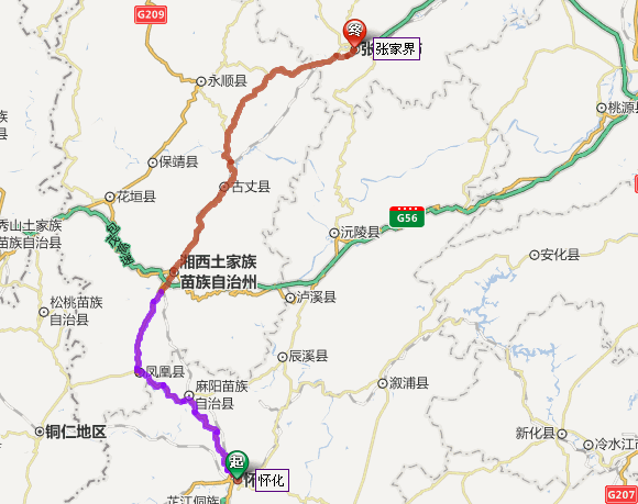 左右,沿途經(jīng)過懷化——麻陽——鳳凰古城——吉首——古丈縣——芙蓉鎮(zhèn)——張家界。