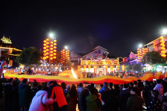 火龍出場(chǎng),街區(qū)狂舞;盤龍點(diǎn)睛,眾人祈福。12月21日,農(nóng)歷冬至,當(dāng)天夜晚在旅游勝地張家界武陵源區(qū)溪布老街?jǐn)[手堂廣場(chǎng)啟動(dòng)的 “武陵腔調(diào):趕火趕戲趕大年”活動(dòng)儀式上,一條全身似火的長(zhǎng)龍?jiān)诮倜良覂号奈鑴?dòng)下 “閃亮”登場(chǎng),格外耀眼。據(jù)了解,這條長(zhǎng)龍身有香味,全長(zhǎng)108米,是目前世界最長(zhǎng)的香火龍。