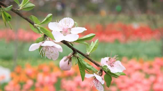 園內(nèi)的桃花開得正艷,郁金香和桃花在一起的地方更是美上加美,成為游客拍攝最多的地方。由于游客眾多,經(jīng)常有人踏入花田中拍照,這可忙壞了現(xiàn)成巡邏的工作人員,筆者在此呼吁大家愛花更護花,文明欣賞。