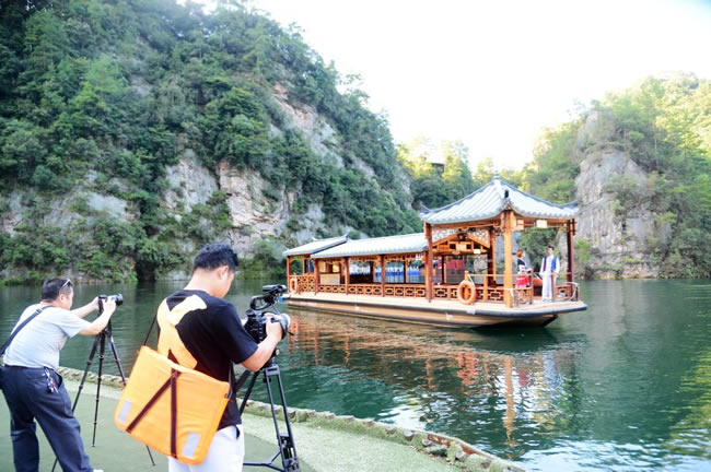 在武陵源期間,攝制組一行先后對武陵源天子山、袁家界、百龍?zhí)焯荨毞搴、黃龍洞、溪布老街等自然人文景區(qū)景點進行了立體拍攝,屆時武陵源神奇美麗的地質(zhì)地貌風(fēng)光、多彩多姿的民俗非遺文化,都將在專題片中得到很好的展現(xiàn)。