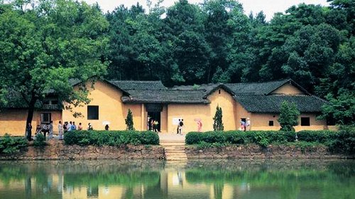 【毛澤東故居】:位于韶山村土地沖上屋場,屋前荷花塘和南岸塘相毗鄰,放眼青山,背依翠竹映襯得生氣盎然。