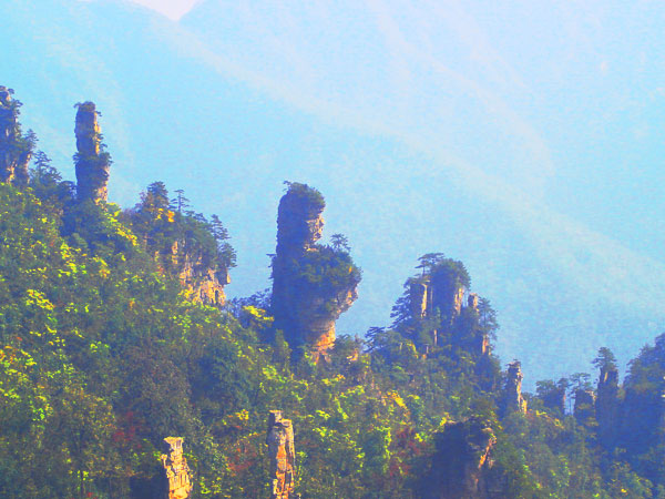 下 午:中餐后游玩世界自然遺產(chǎn)的核心---袁家界景區(qū)(包含電影《阿凡達(dá)》中“哈利路亞山”原型“乾坤柱”、天下第一橋、九天玄梯、乾坤柱、連心橋、中韓友誼亭、神龜問天、迷魂臺等景點) 。袁家界,是張家界森林公園山頂觀景最為奇特壯觀景區(qū)之一,與黃石寨遙遙相對卻勝過它…之后便乘坐大約20分鐘的環(huán)保車可到大觀臺住宿地休息,體力好者導(dǎo)游可帶去游玩未開發(fā)景區(qū)——老屋場風(fēng)景區(qū),觀原生態(tài)的空中田園及神兵聚會絕景。